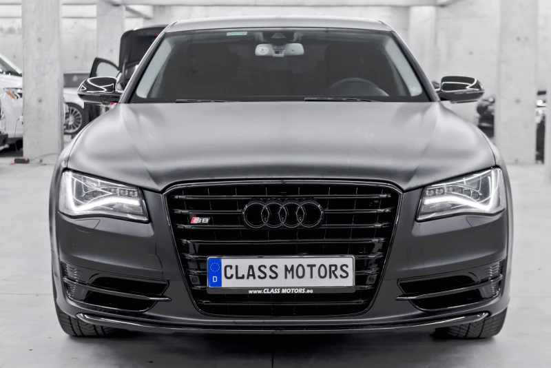 Audi A8 4. 2 FSI V8 - 371 кс * S8 оригинален пакет * Автомобилът е цялостно облепен с 3М Черен сатен фолио _____________________________ * Възможност за БАРТЕР * Възможност за Лизинг - 100% одобрение на момента - Получавате автомобила в рамките на същия ден - Най добри условия за лизинг _________________________________ - S8 пакет - Генерация с брутален звук - 21 цола Rotor джанти със зимни гуми - S8 спортен волан - Въздушно окачване - FULL LED фарове - ЛЕД дневни светлини и стопове - Декоративни елементи Carbon - Кожен салон от естествена кожа Nappa - Алкантара таван - Камера за заден ход - Електрически багажник - Масаж на седалки - Подгряване и обдухване на всички седалки - Щори на задни врати - Аudi Premium озвучителна система - Амбиентно осветление - Четиризонов климатроник - Тонирани многослойни шумоподтискащи стъкла с инфрачервен филтър - Bluetooth телефонна система - Linguatronic -гласови команди - Комфортни предно и задно стъкла с функция против заслепяване