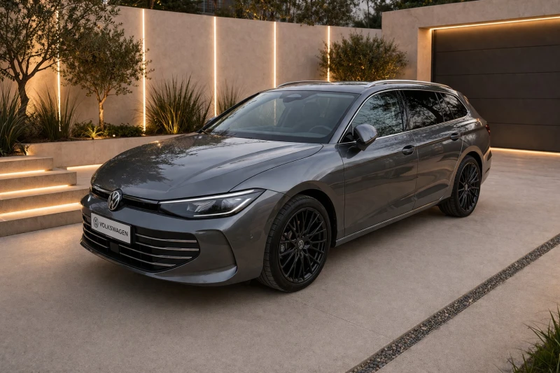 Предлага се за продажба VW Passat Variant Business eTSI DSG в цвят Diabasgrau Metallic, с мощност 110 kW / 150 к. с. , 7-степенна DSG автоматична скоростна кутия и висококачествено Business оборудване. Автомобилът е без катастрофи, без драскотини и вдлъбнатини и се намира в много поддържано, почти като ново състояние. Само с 4 500 км пробег, този Passat е практически като нов. Passat впечатлява с просторен интериор, модерни технологии, висок комфорт при шофиране и елегантна комбинация от икономичен двигател и уверено пътно поведение. Идеален е като стилен автомобил за семейството, бизнеса или дълги пътувания. **VW Passat Variant Business eTSI DSG** **Цвят: ** Diabasgrau Metallic **Интериор: ** Soul-черен **Двигател/скоростна кутия: ** 1. 5 eTSI, 110 kW / 150 к. с. , 7-степенна DSG (бензин, mild hybrid) **Серийно оборудване** ACC stop & go Функция за спиране при завиване и асистент за избягване на препятствия Система за разпознаване на разсейване и умора Асистент за кръстовища Система за аварийно спиране Front Assist с разпознаване на пешеходци и велосипедисти Асистент за поддържане на лентата Lane Assist и асистент за движение в задръстване Асистент за смяна на лентата Side Assist , асистент при излизане от паркомясто и предупреждение при отваряне на вратите Park Assist Plus с парктроник отпред и отзад Асистент за потегляне по наклон Електронна програма за стабилност Електронна ръчна спирачка с функция Auto-Hold Камера за заден ход Rear View Разпознаване на пътни знаци Digital Cockpit Pro Навигационна система 12, 9-инчова инфотейнмънт система App-Connect с безжична функция Телефонен интерфейс Comfort с индукционно зареждане 3-зонов автоматичен климатроник Air Care Climatronic Предни седалки ergoActive Подгряване на предните седалки Масажна функция отпред ISOFIX точки за детски седалки на външните задни места и на мястото до водача, съвместими с i-Size Предни и задни въздушни възглавници тип завеса, предни странични въздушни възглавници, централен airbag Система за спешни повиквания Проактивна система за защита на пътниците Електронен имобилайзер Отопляем кожен мултифункционален волан с пера за превключване LED фарове LED задни светлини Keyless Start 8 високоговорителя 10-цветно амбиентно осветление с декоративно фоново осветление DAB+ цифров радио прием Сребристи анодизирани покривни релси 16-цолови алуминиеви джанти Venezia **Допълнително оборудване** **Пакет Unlimited: ** **Пакет Park & Komfort със Safe защита** Car2X Алармена система с наблюдение на интериора, резервна сирена и защита при репатриране Щора за багажника изтегляща се и сваляща се, с електрическо отваряне Заден капак със сензорно отваряне и електрическо затваряне със закъснение, с дистанционно отключване Memory функция за паркинг асистента Паркинг асистент Park Assist Pro , подготвен за дистанционно паркиране Безключова система за заключване и стартиране Keyless Access със Safe заключване Слънцезащитни щори на задните странични врати **Асистентен пакет IQ. DRIVE ** Асистент за водача Travel Assist и Emergency Assist Електрическа защита за деца на задните врати, управляема от мястото на водача Панорамна 360 камера Area View **Пакет багажно отделение** Мрежа за багаж 230 V контакт в багажника **IQ. LIGHT LED Matrix фарове** Светлини за завиване и за лошо време Динамичен асистент за дълги светлини Dynamic Light Assist LED задни светлини с динамични мигачи, осветено лого Volkswagen и хромирана лайсна Осветена лайсна между предните и задните светлини, както и нишите на дръжките на вратите Динамично регулиране на светлинния сноп с динамичн