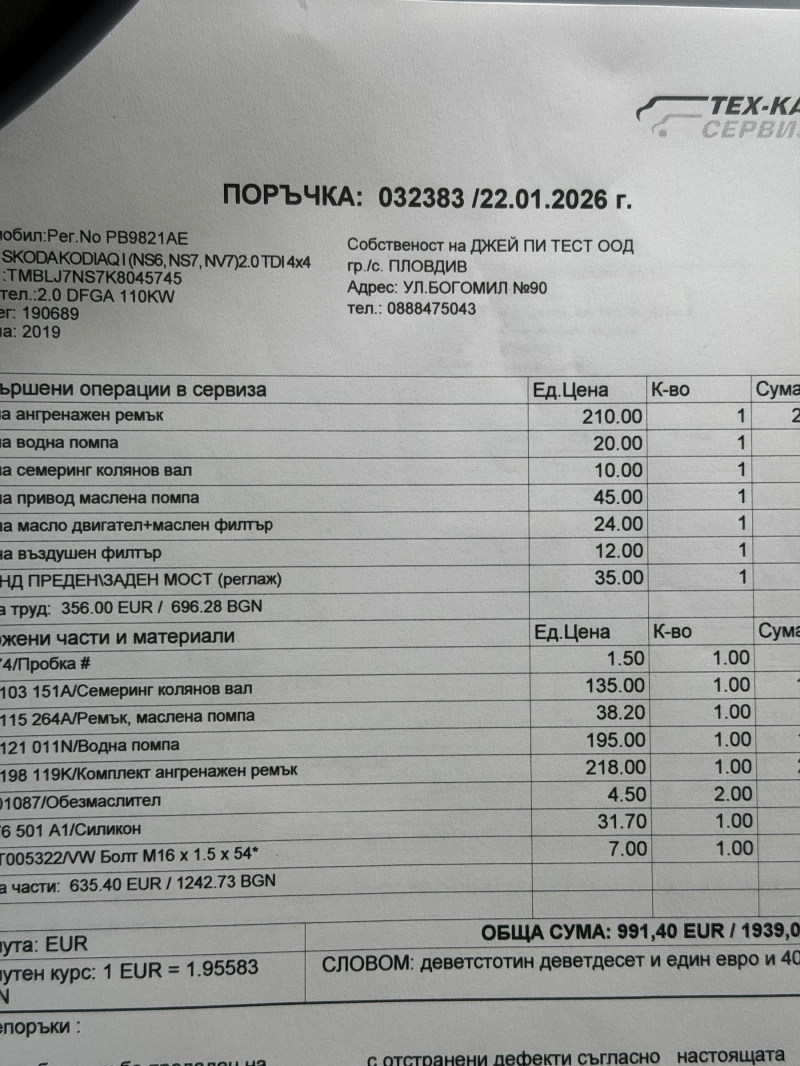 Автомобилът се поддържа безкомпромисно. В движение е всеки ден. Сменени масла + филтри - 10. 04. 26. Смяна на ангренажен ремък, водна помпа и всичко прилежащо - Януари 2026. Документи(фактури) за всяка дейност, налични и проследими. Проверка във всеки сервиз , по желание. Гуми - летни Michelin, втори сезон(първи сезон 23 500км изминати) Абсолютно всичко работи. Колата се заменя заради нов автомибил. Оглед, по всяко време в Пловдив, може и в София - след уговорка. Има VIN за проверка, още снимки - при нужда.